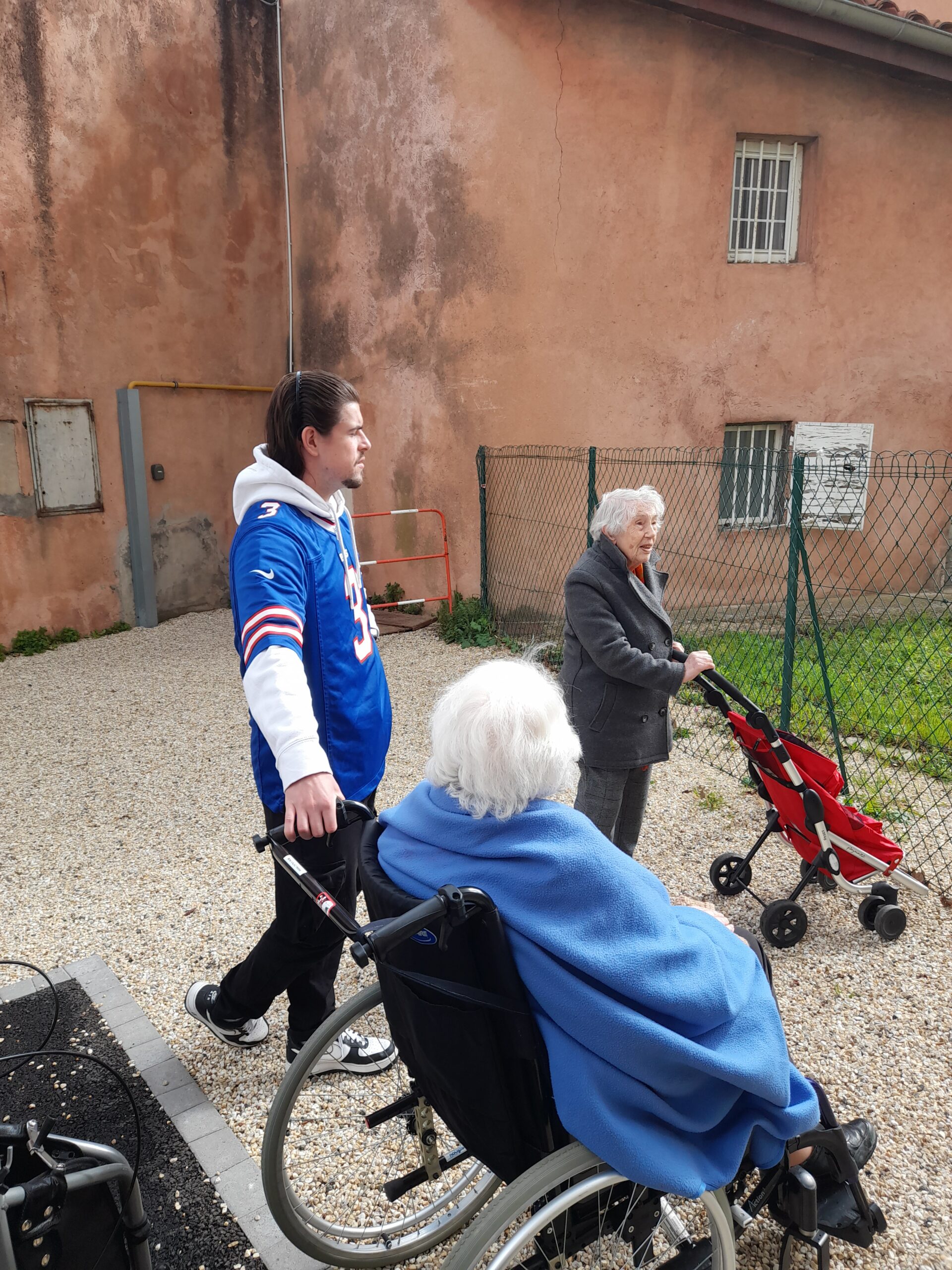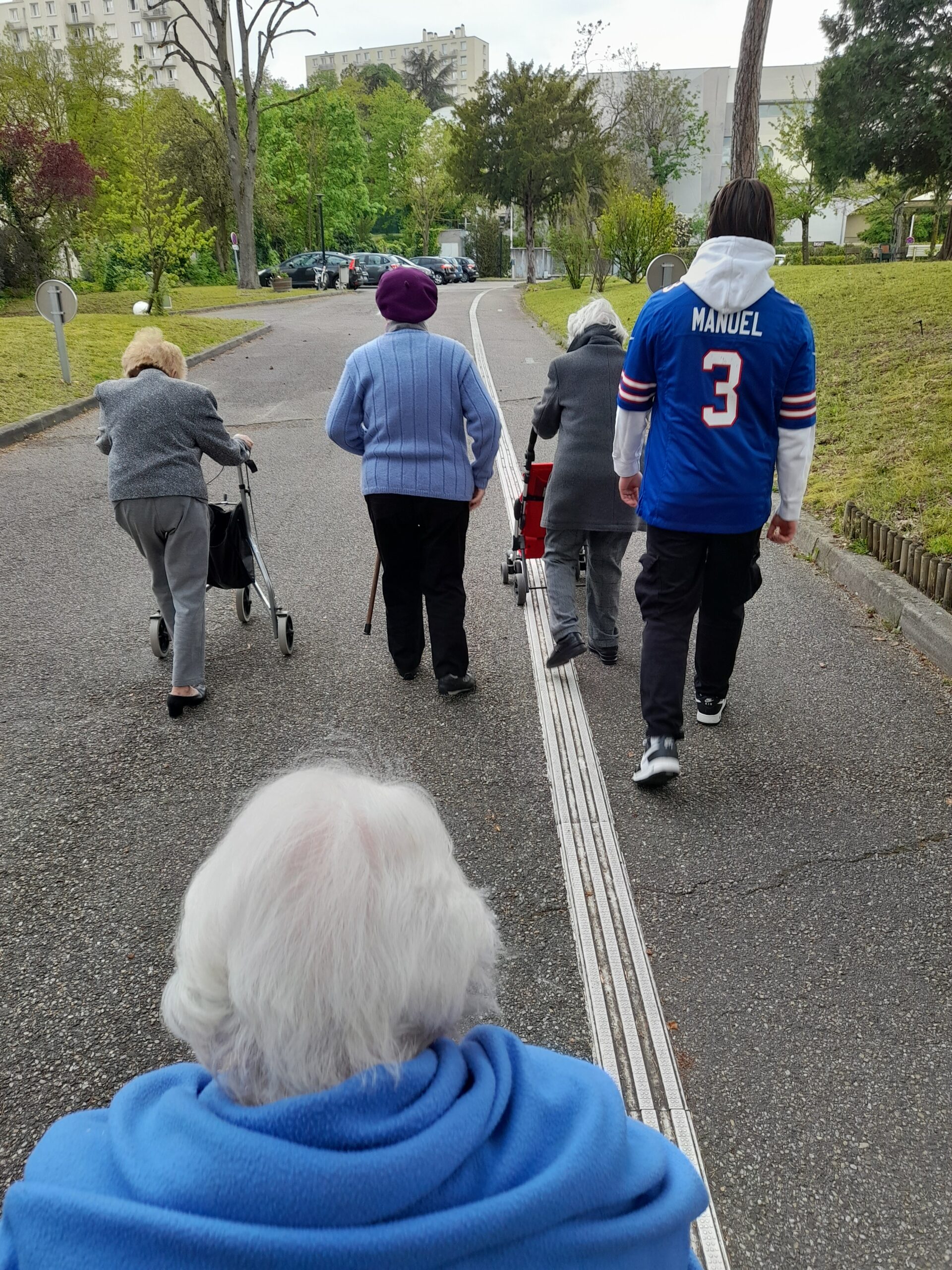 Toutes les semaines, un groupe de quatre résidents sortent en fin de matinée avec Arthur et Alexandre pour aller se balader dans le quartier Saint-Irénée. Les résidents apprécient ces moments de sorties matinales.