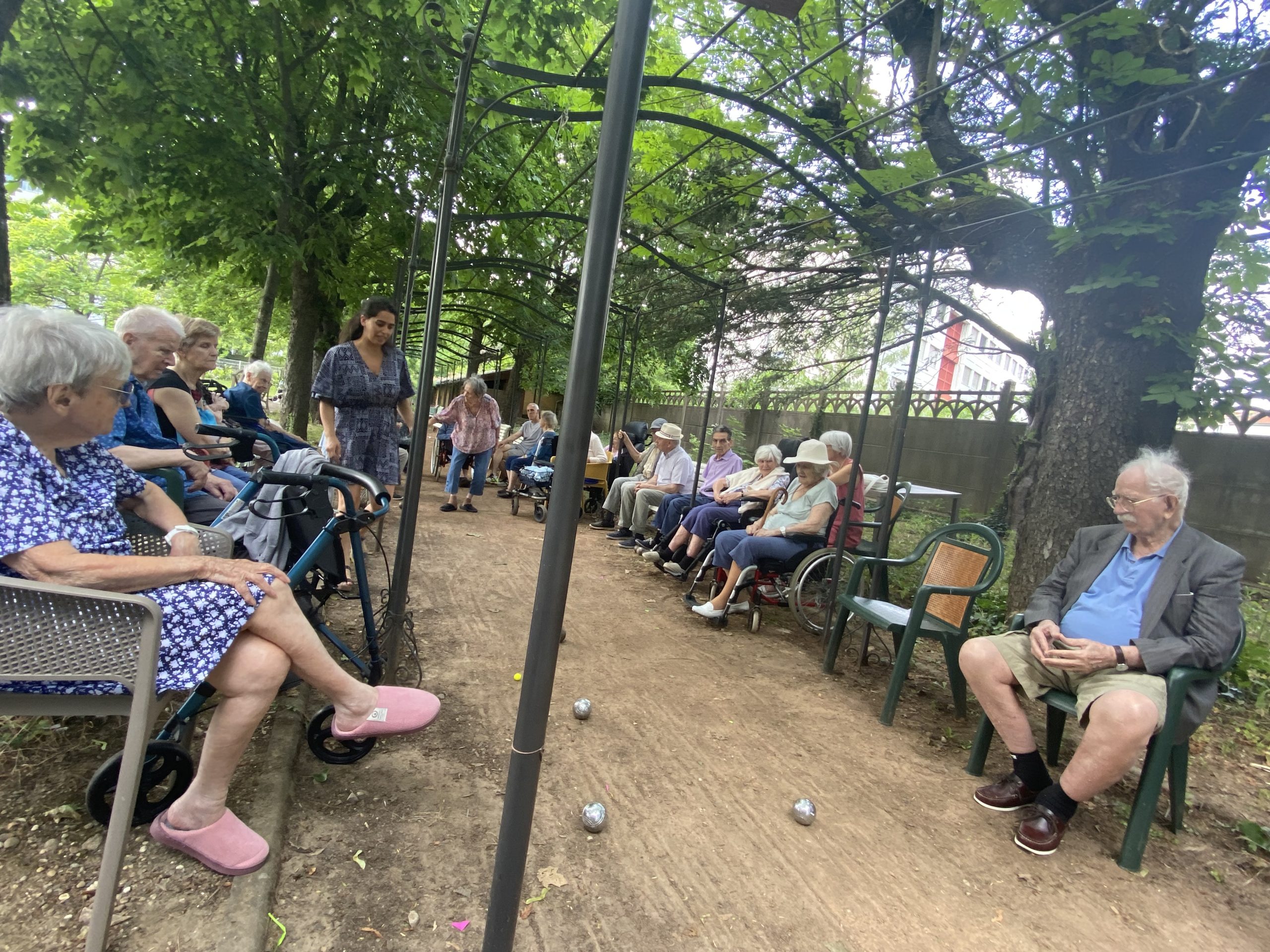 Jeudi 15 juin, l’après-midi fut animée avec la réalisation d’un tournois de pétanque. Les différentes équipes avec résidents, familles et salariés ont mené des parties endiablées. L’ambiance était au rendez-vous. Tout le monde s’est bien amusé. Avec les beaux jours, nous allons pouvoir faire de nouvelles parties. Une activité qui est toujours très appréciée.