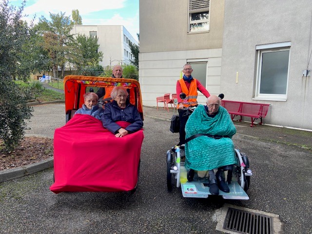 Les tours de vélo se poursuivent pour les résidents des Amandines avec l’association A vélo sans âge pour le plus grand bonheur de tous.