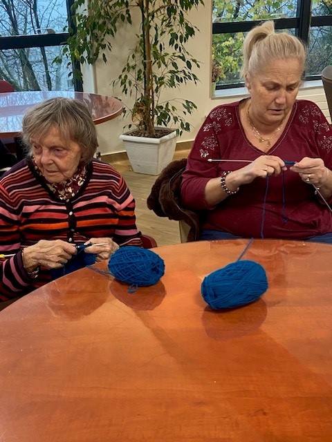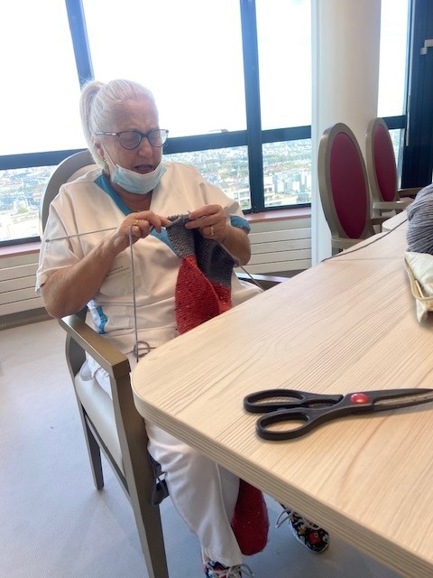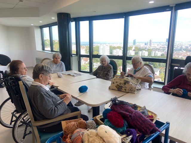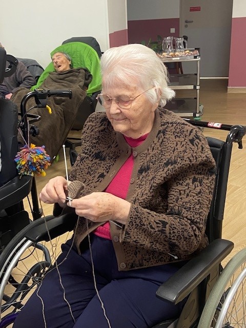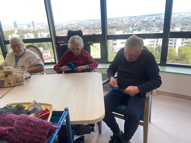 Pour beaucoup de résidents, le tricot fait partie de leur histoire. Chaussettes, écharpes, pulls ou couvertures : ces gestes précis, appris parfois dès l’enfance reviennent naturellement. Ces ateliers sont l’occasion de raviver les souvenirs, de se sentir compétent et de transmettre un savoir-faire précieux.