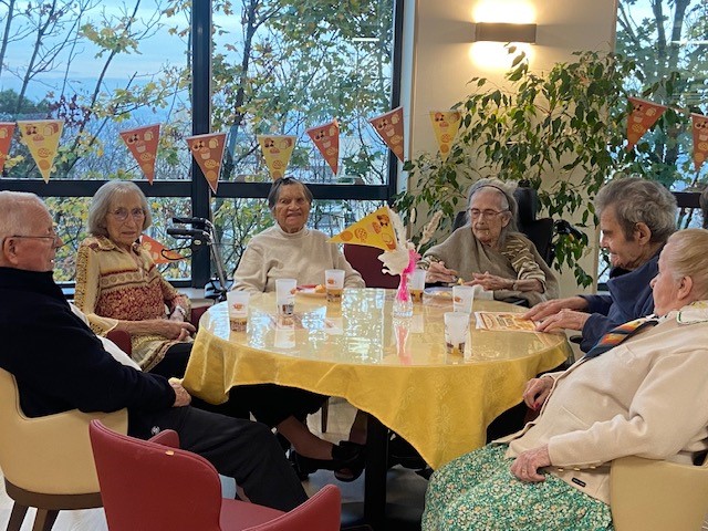 Les Amandines ont participé au challenge » un goûter presque parfait », un concours convivial entre les établissements ACPPA qui ont mis à l’honneur cette année un thème cher au cœur des résidents : les desserts d’antan. L’occasion de réveiller des souvenirs gourmands, de partager des anecdotes et de créer du lien autour d’un moment simple mais profondément humain. Merci à l’équipe de cuisine qui a préparé des bavarois aux poires et mangues qui ont beaucoup plus aux résidents et proches présents. Merci à Habiba l’animatrice pour la décoration réalisée à cette occasion et l’ambiance festive autour de ce challenge.