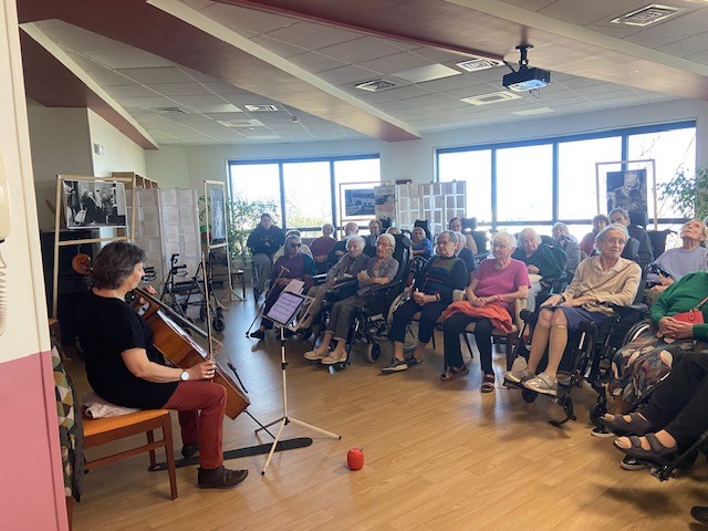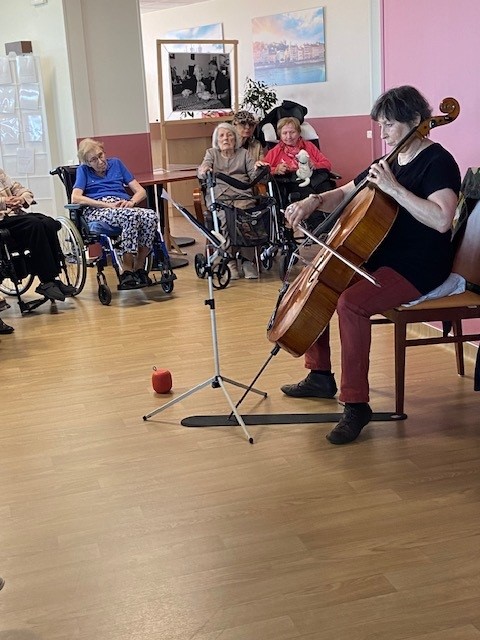 Certains instants viennent illuminer la journée et marquer les esprits. C’est le cas des temps musicaux, et plus particulièrement de ceux consacrés au violoncelle, un instrument à la sonorité profonde et enveloppante. Dès les premières notes, un silence particulier s’installe. Les regards se tournent, les conversations s’apaisent. Le violoncelle, avec son timbre chaleureux, semble parler directement aux émotions. Pour les résidents, c’est bien plus qu’un simple concert : c’est une expérience sensorielle et affective.