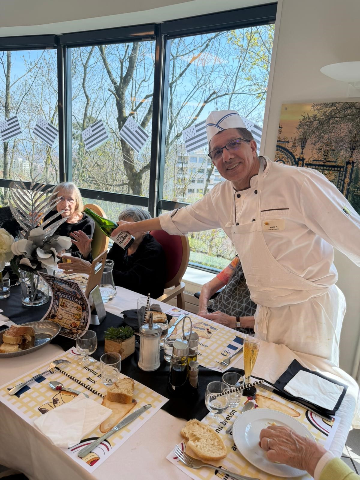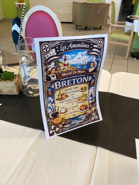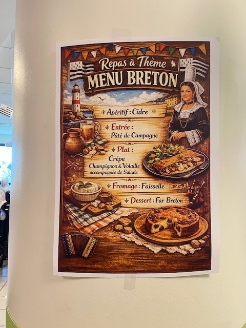 Dans le quotidien des résidents, les repas occupent une place essentielle. Bien plus qu’un simple moment pour se nourrir, ils sont synonymes de convivialité, de souvenirs et de plaisir. C’est dans cet esprit que les équipes de cuisine se mobilisent régulièrement pour proposer des repas à thème. Récemment, c’est la Bretagne qui s’est invitée à table, pour le plus grand bonheur de tous.
