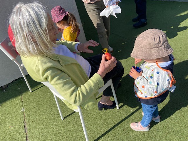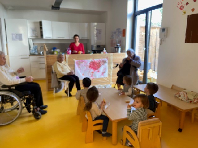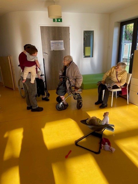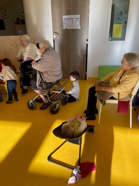 Les résidents des Amandines partagent régulièrement un moment plein de douceur en rendant visite aux tout-petits d’une crèche. Des sorties placées sous le signe de la tendresse, des sourires et de la découverte.