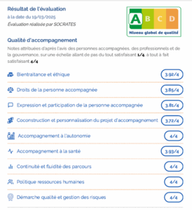 Cette évaluation réussie n’est pas une fin en soi mais une étape dans notre démarche d’amélioration continue. Nous poursuivons chaque jour notre engagement pour offrir un accompagnement toujours plus attentif, respectueux et humain.