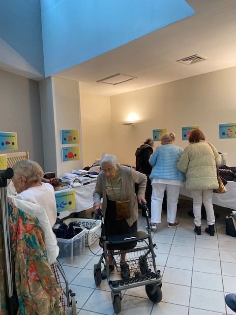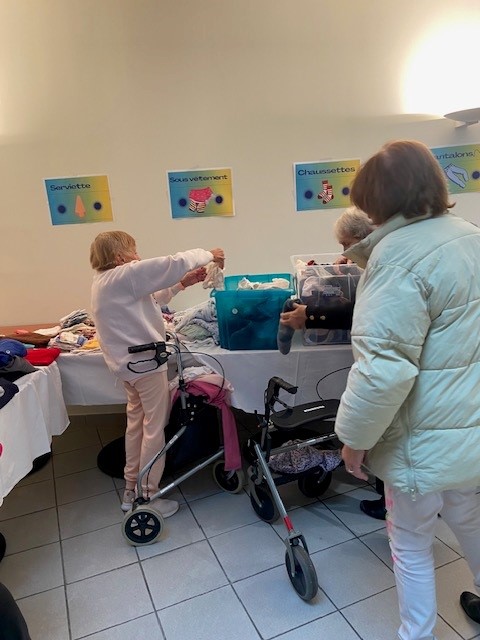 Le 17 novembre, nous avons organisé une journée portes ouvertes au sein de la lingerie, à destination des résidents et de leurs familles. Cette initiative avait pour objectif de mettre en lumière un service essentiel du quotidien, souvent discret mais indispensable, et de valoriser le travail des lingères qui œuvrent chaque jour au bien-être de tous. En parallèle, nous avons organisé une exposition de vêtements.
