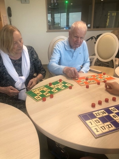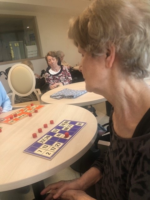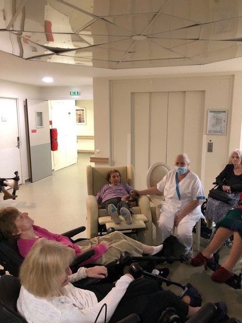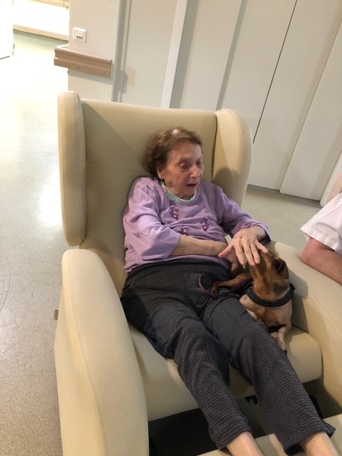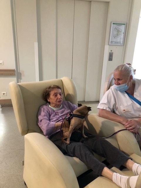 Jeudi 18 mai, jour de l’Ascension, Elisabeth est venue avec Biscotte dans les étages notamment sur l’UPDP pour permettre aux résidents de passer un moment agréable dans le salon de l’étage. Les soignantes ont également organisé un loto.