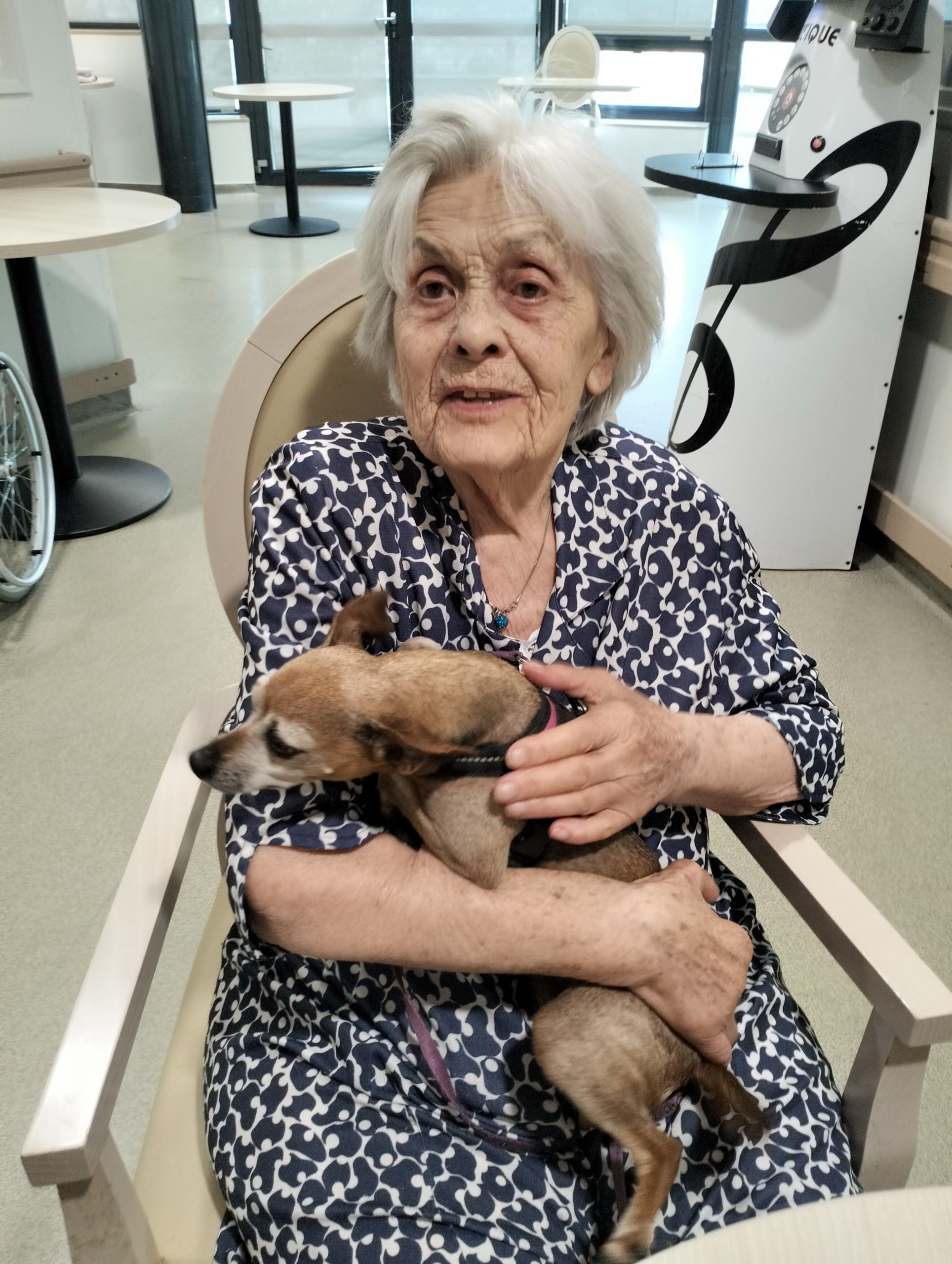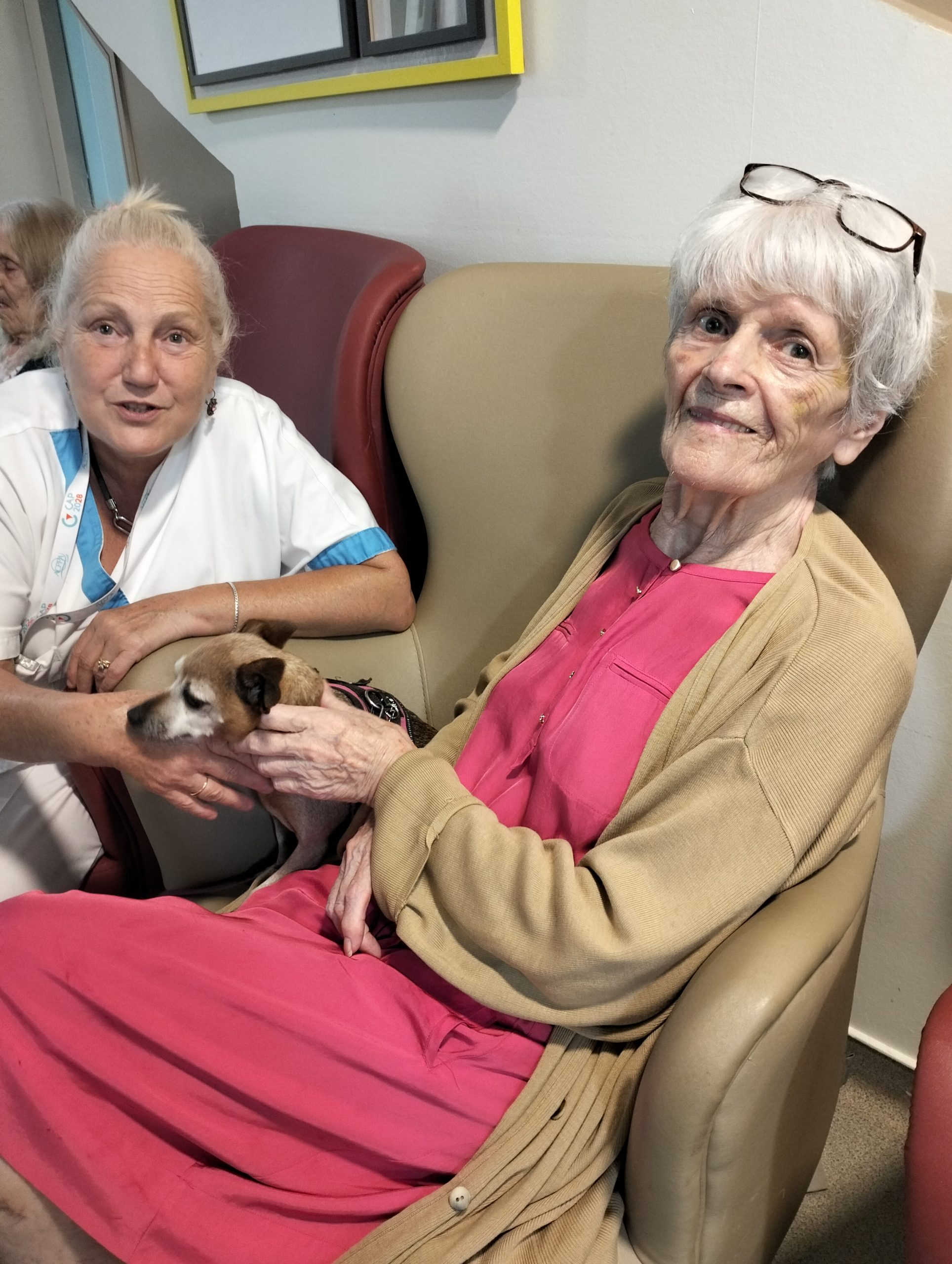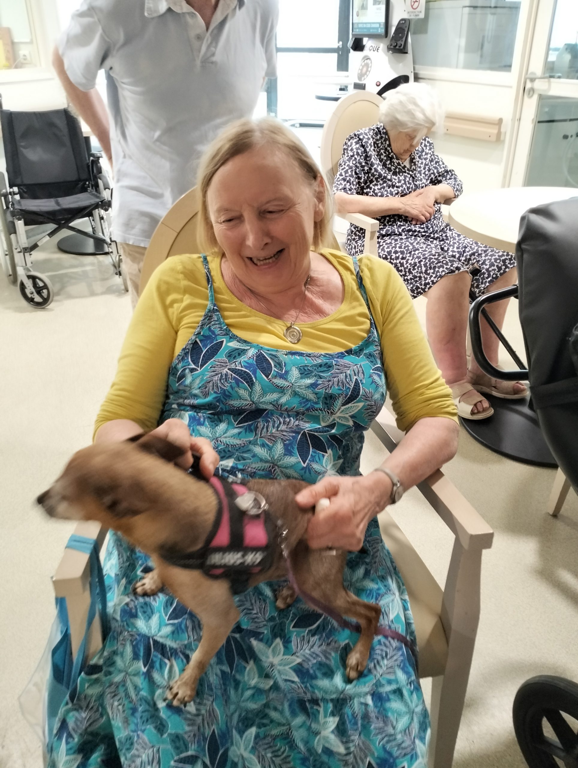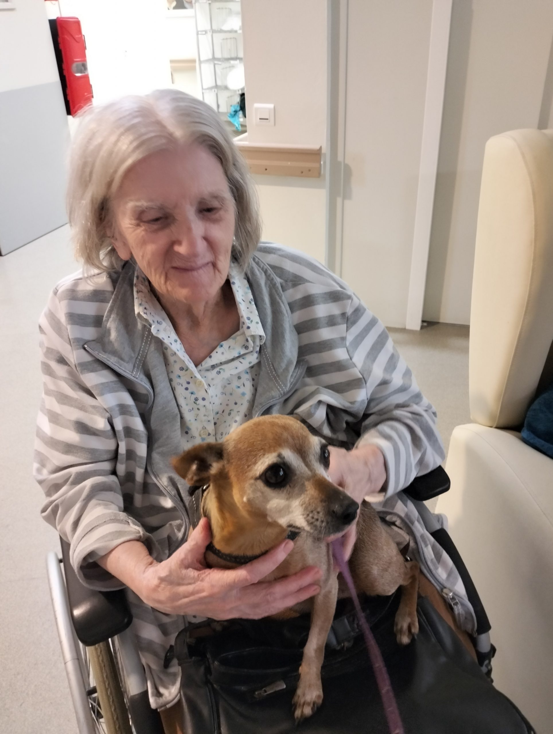 Biscotte vient rendre visite régulièrement aux résidents de notre UPDP. Elle est très appréciée par les résidents et les professionnels. A chaque fois, sa venue dans l’établissement est un plaisir pour tous.