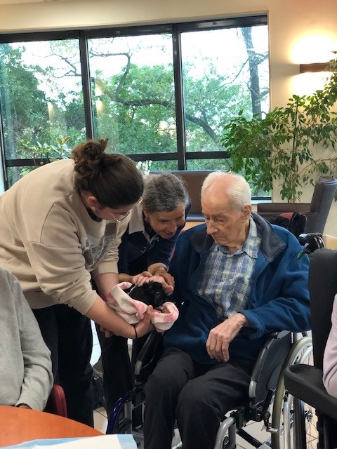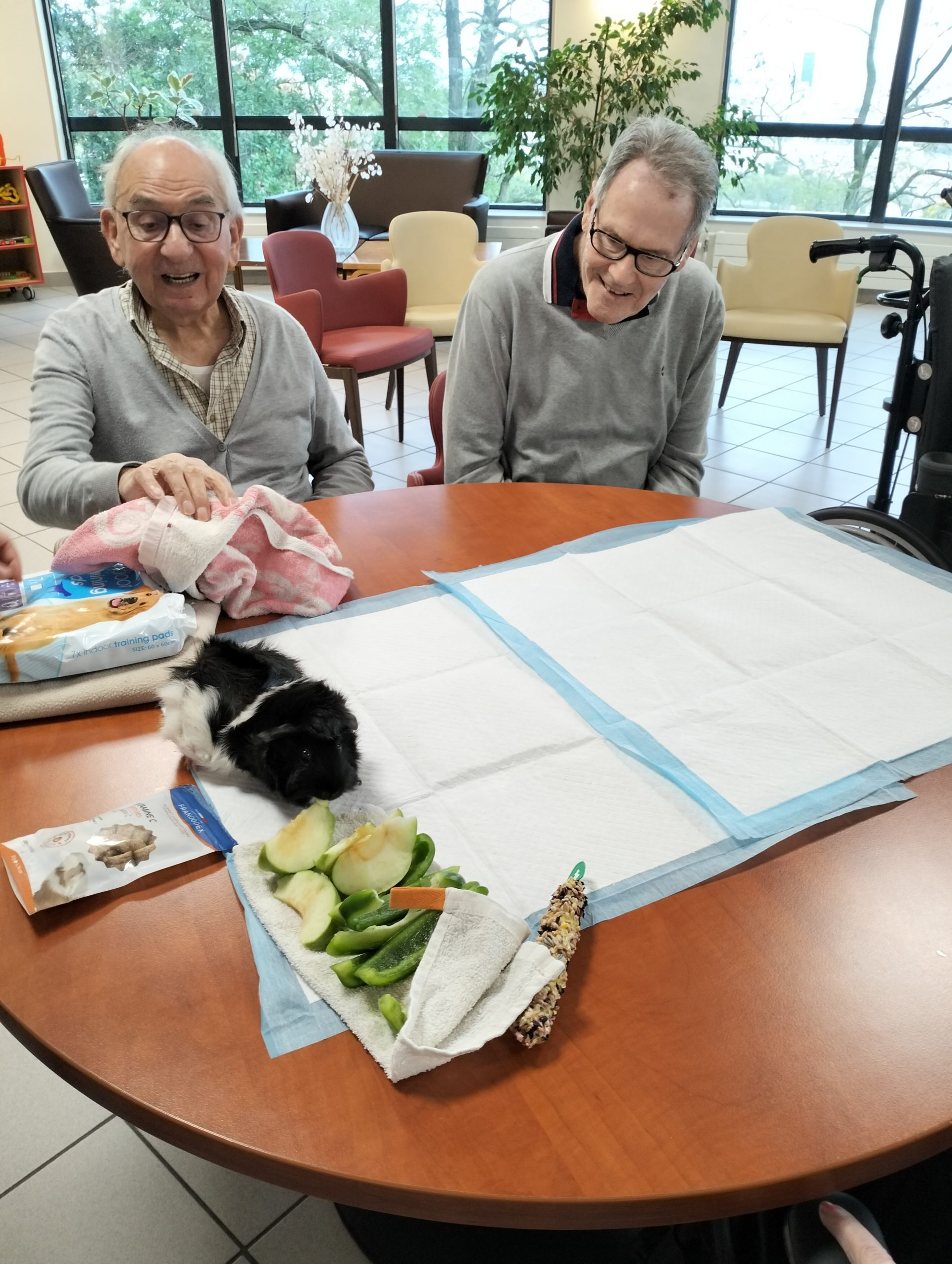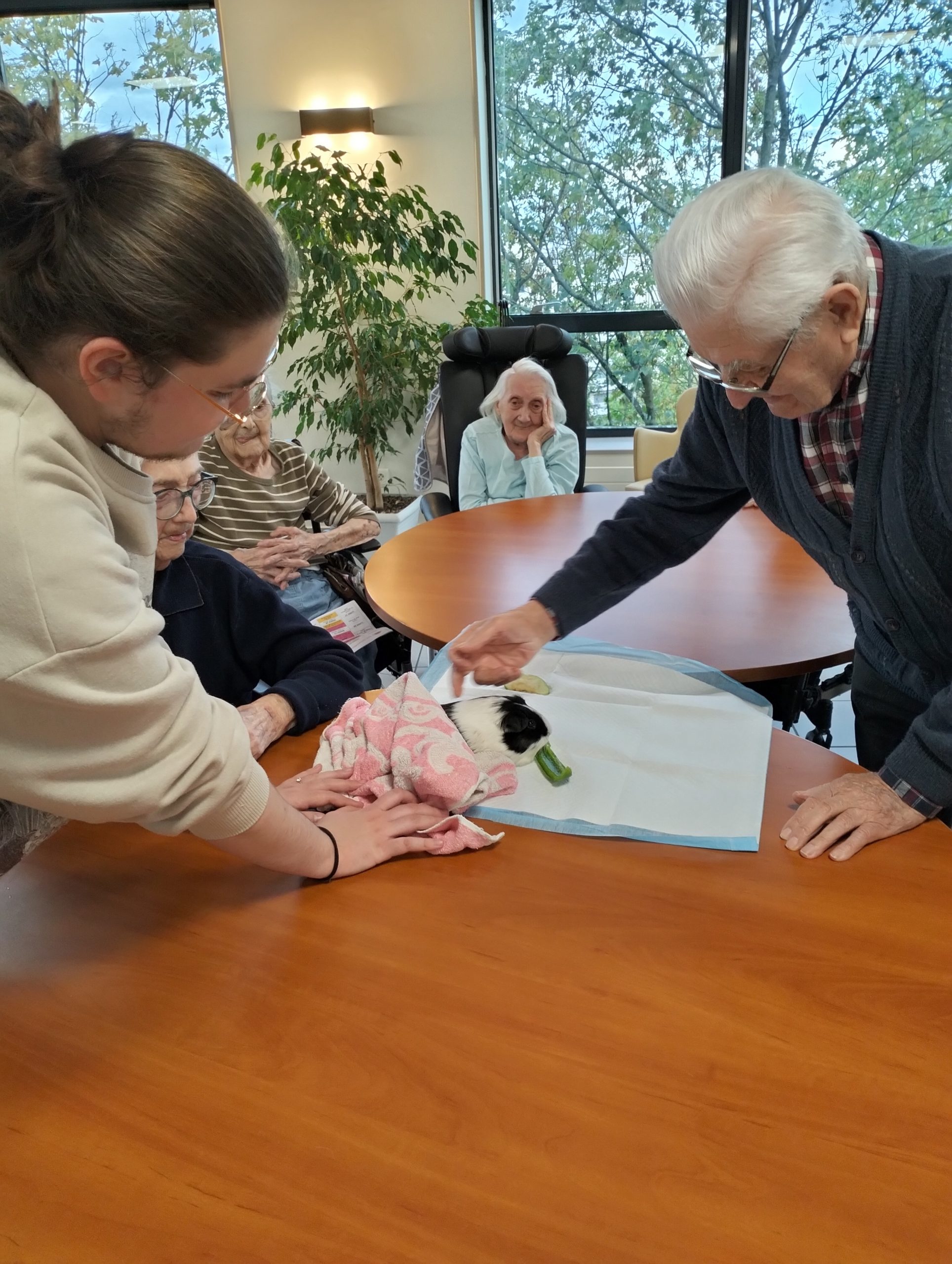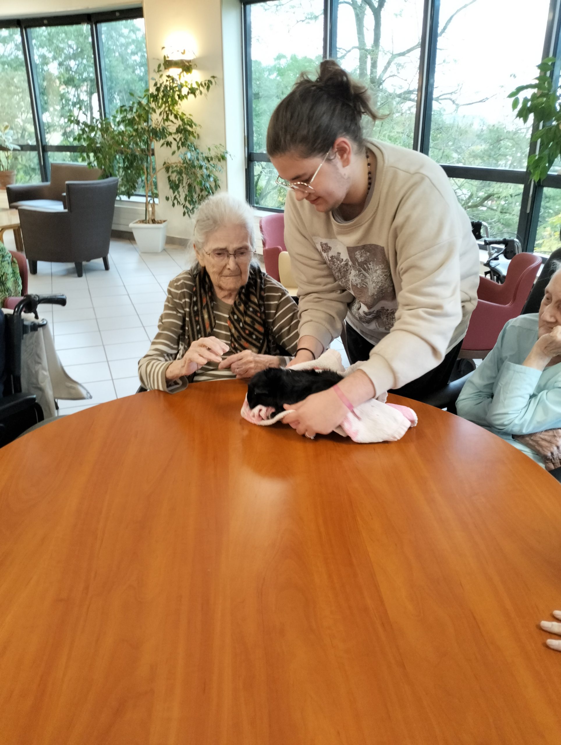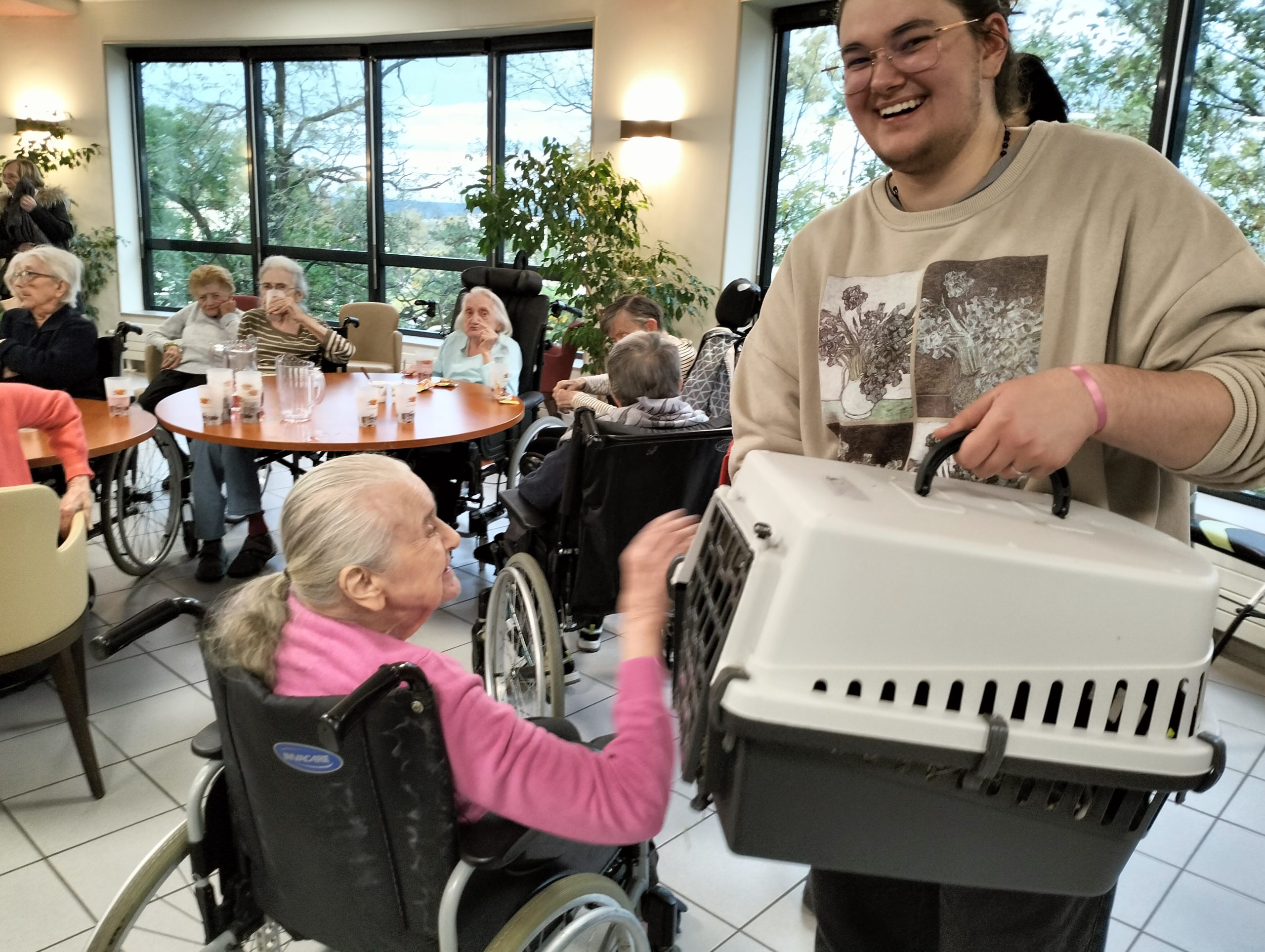 Vendredi 10 novembre, les résidents ont pu profiter d’un après-midi en compagnie de quatre cochons d’inde. Les animaux ont été apportés par Arthur en service civique aux Amandines. Au programme, caresses, découverte des animaux et jeux. Les résidents ont beaucoup apprécié découvrir ces petites bêtes. Merci à Arthur pour son implication et ses idées innovantes.