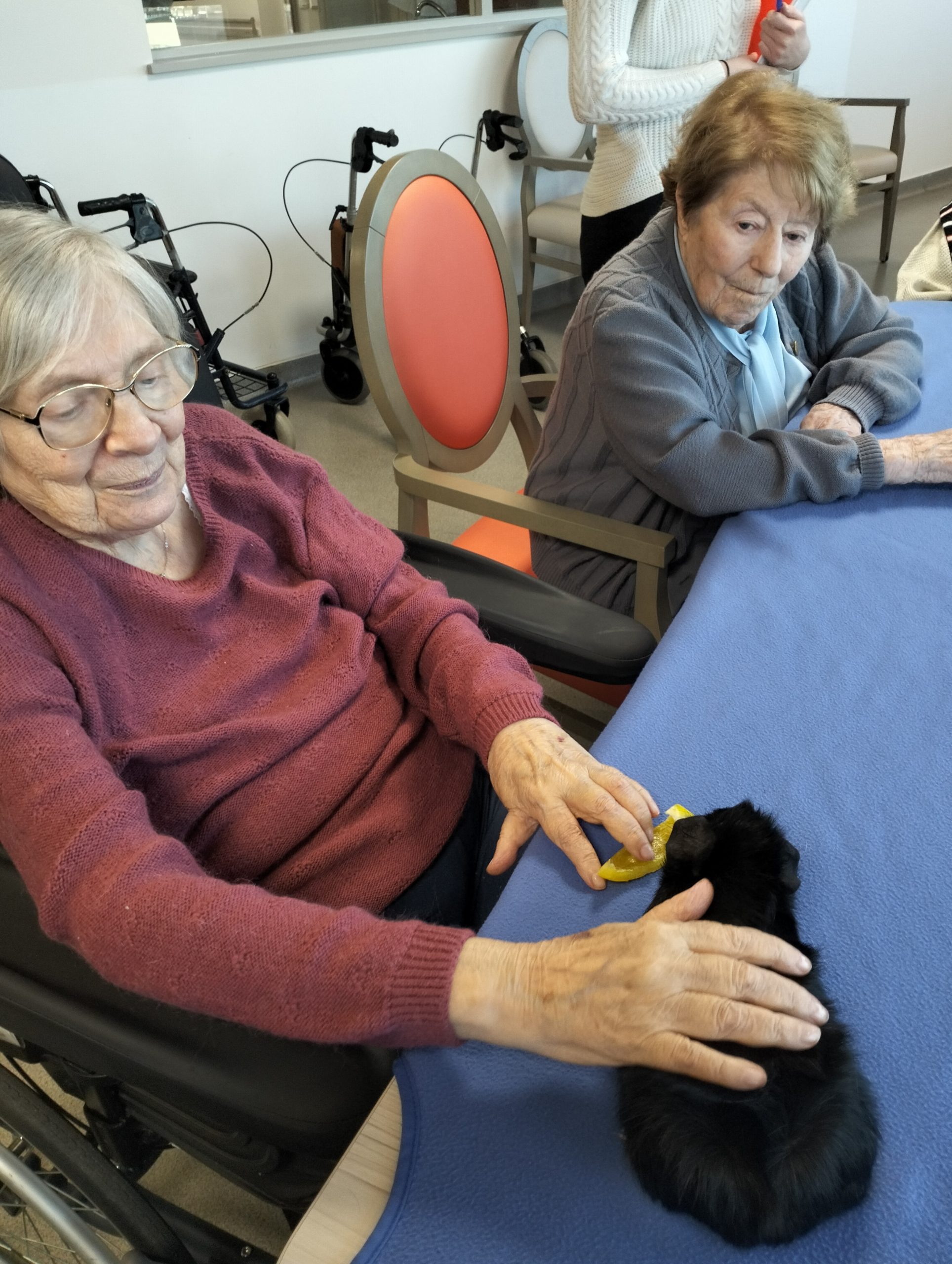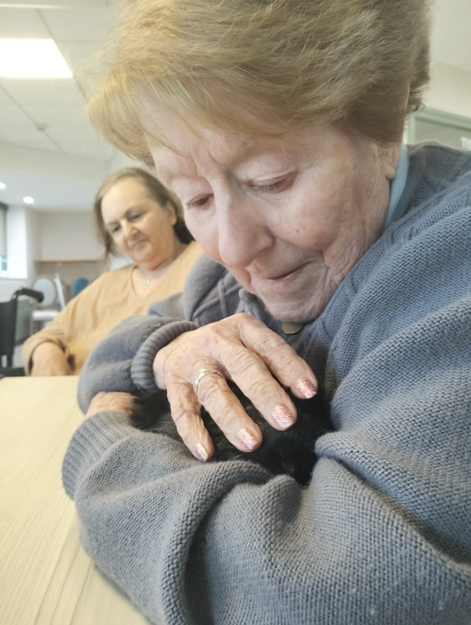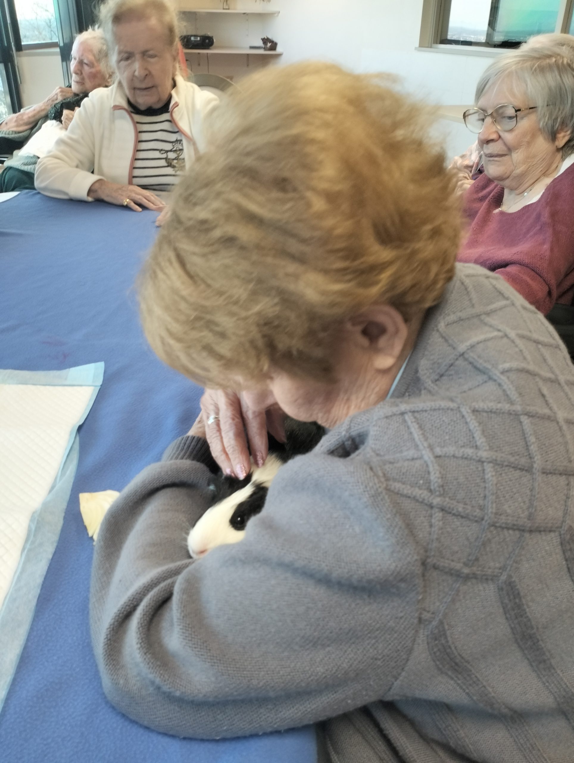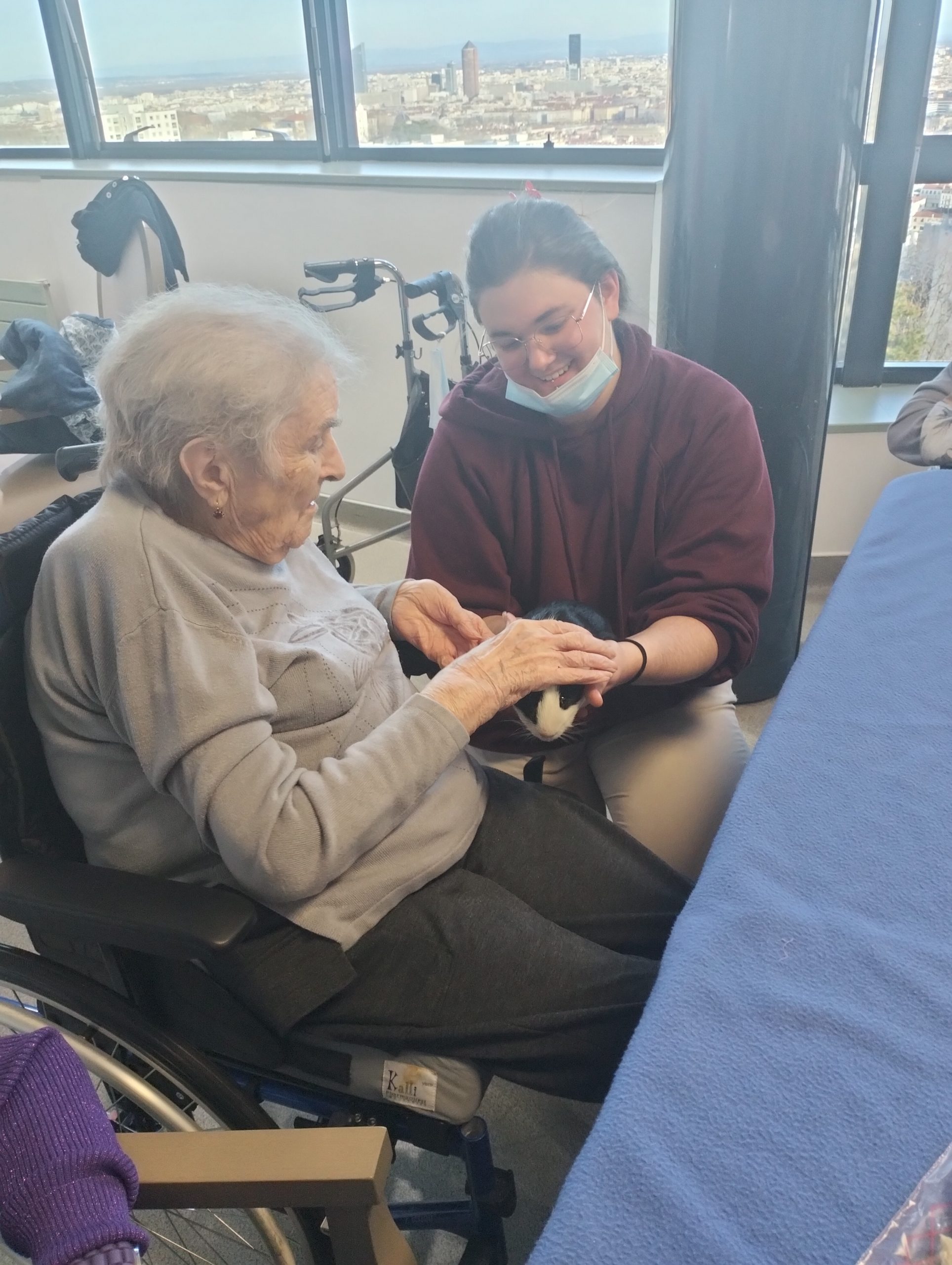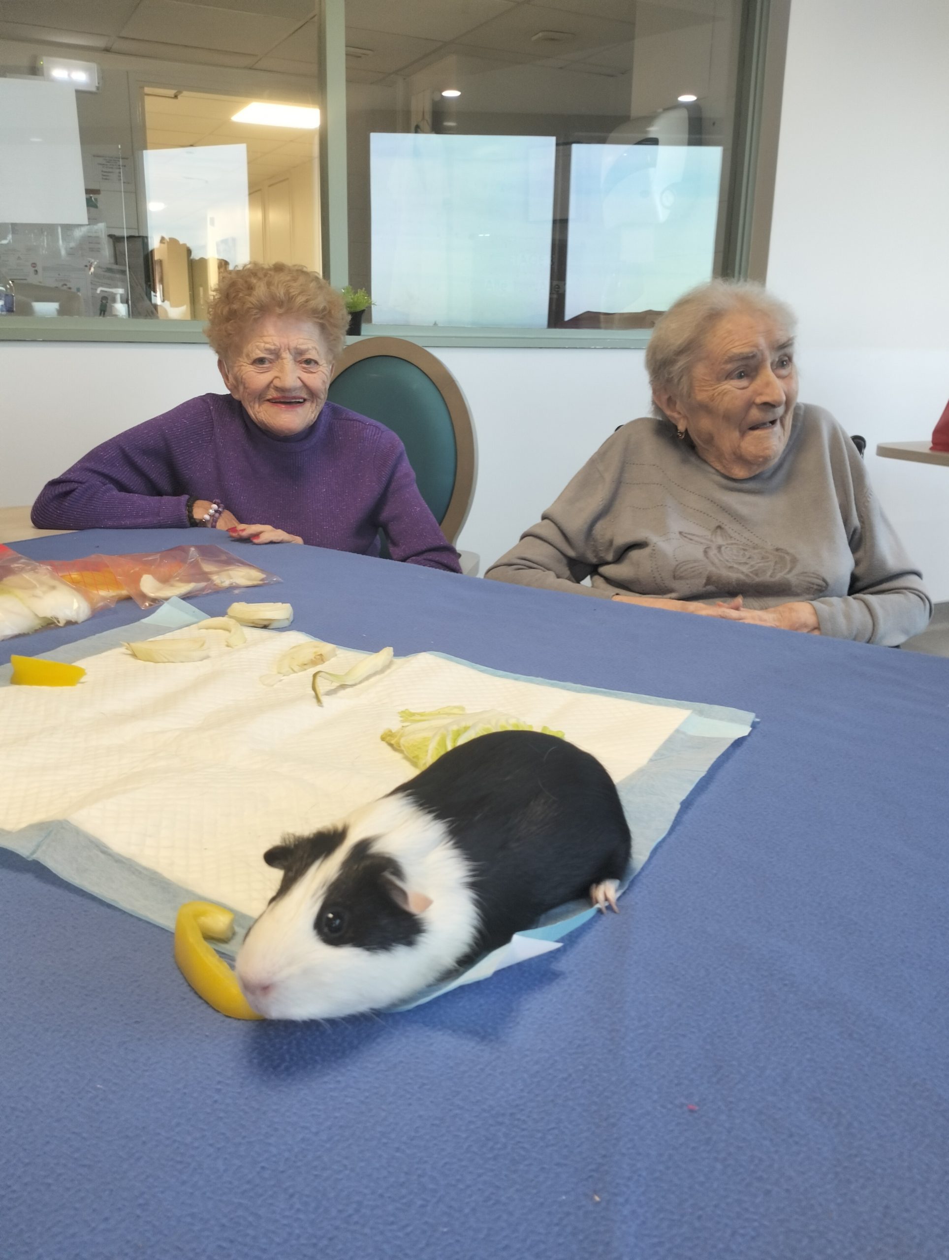 Artur en service civique aux Amandines est venu avec ses deux cochons d’inde le lundi 29 janvier. Il est passé dans chaque étage pour présenter ses petites bêtes. Les résidents intrigués et contents ont pu profiter de ce moment calme pour caresser ces animaux et discuter avec Arthur. Entre rires, surprises et moments de tendresse, les résidents profitent de ces temps de médiation animale pour se changer les idées. Merci à Arthur pour sa bienveillance.