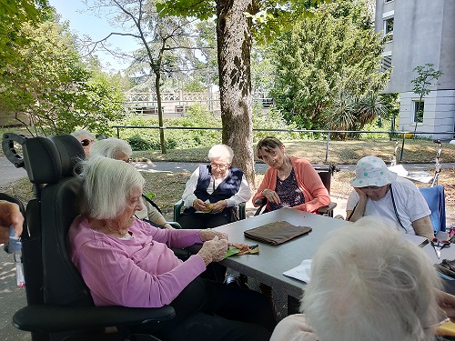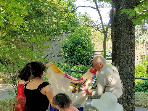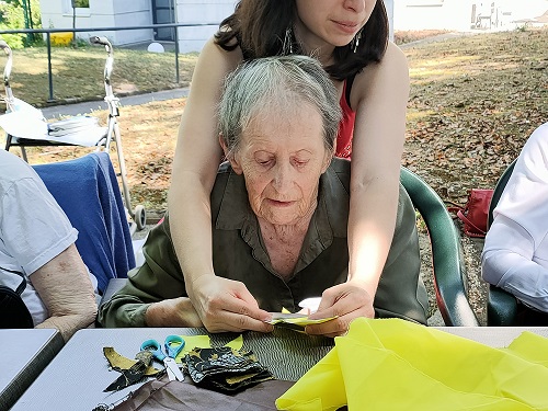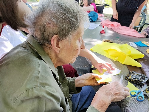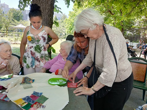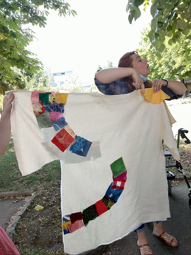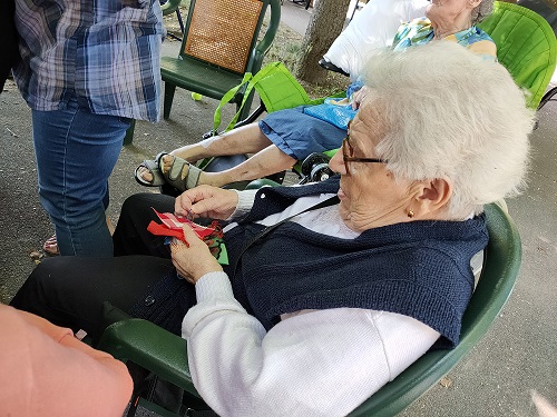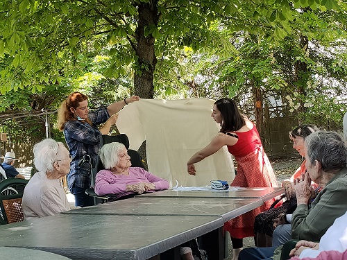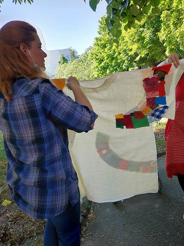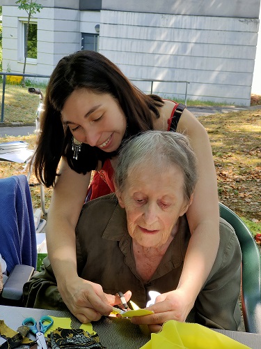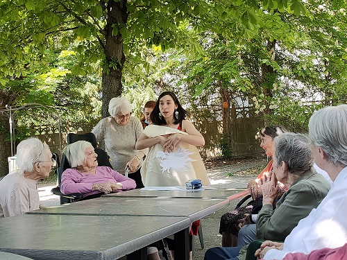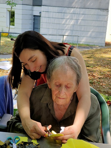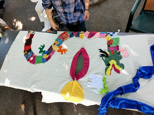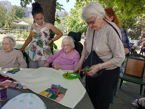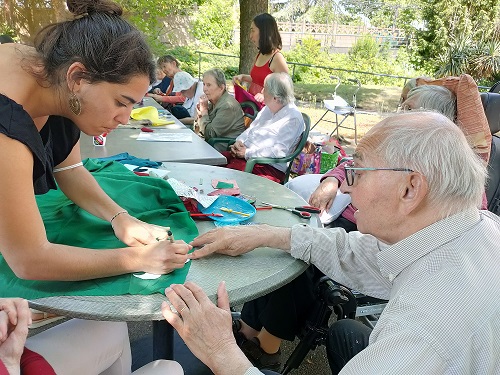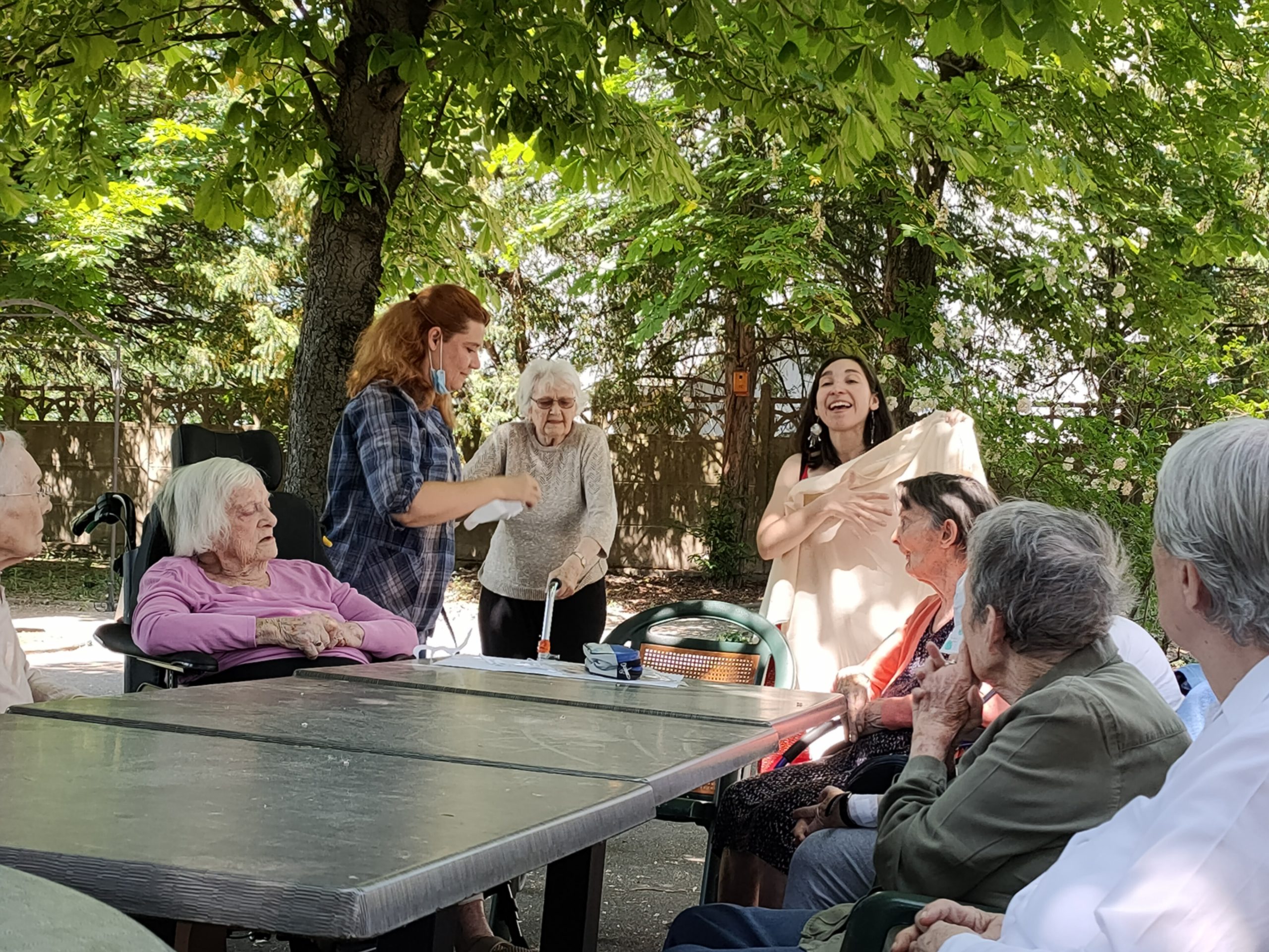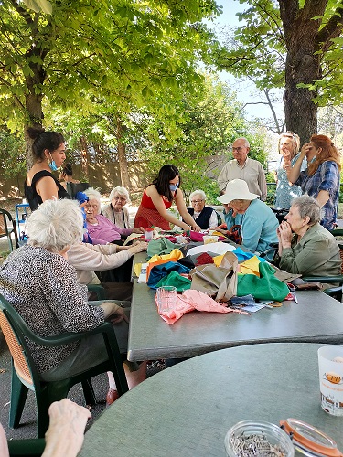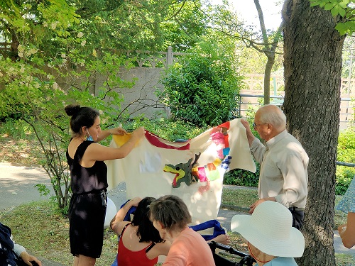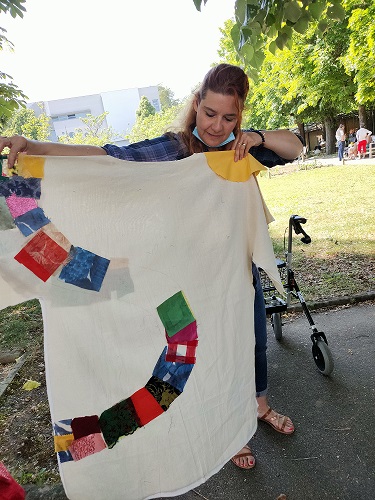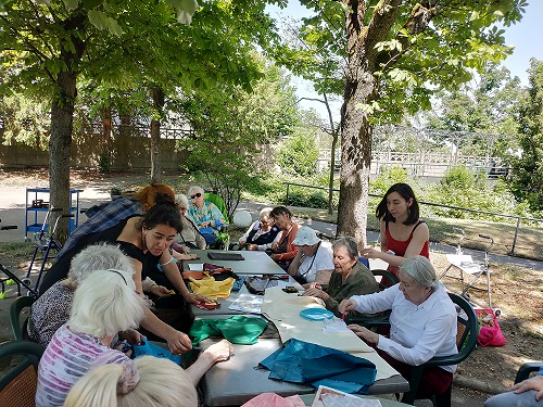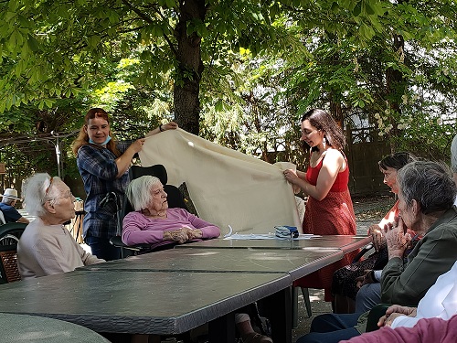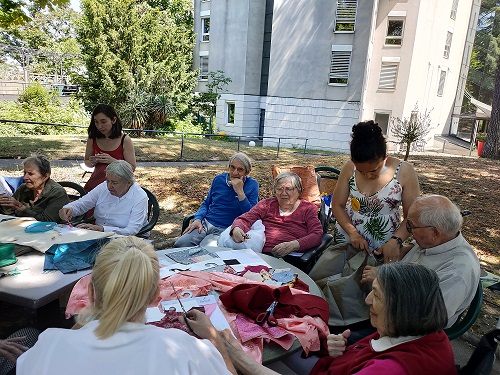 En partenariat avec le musée des tissus, nous avons passé l’après-midi à confectionner un kimono avec des bouts de tissus de différentes matières. L’objectif est de découvrir les tissus, découper puis coller pour confectionner un kimono, toujours en lien avec la route de la soie comme fil conducteur. Les résidents ont tous bien participé et le rendu est vraiment pas mal !